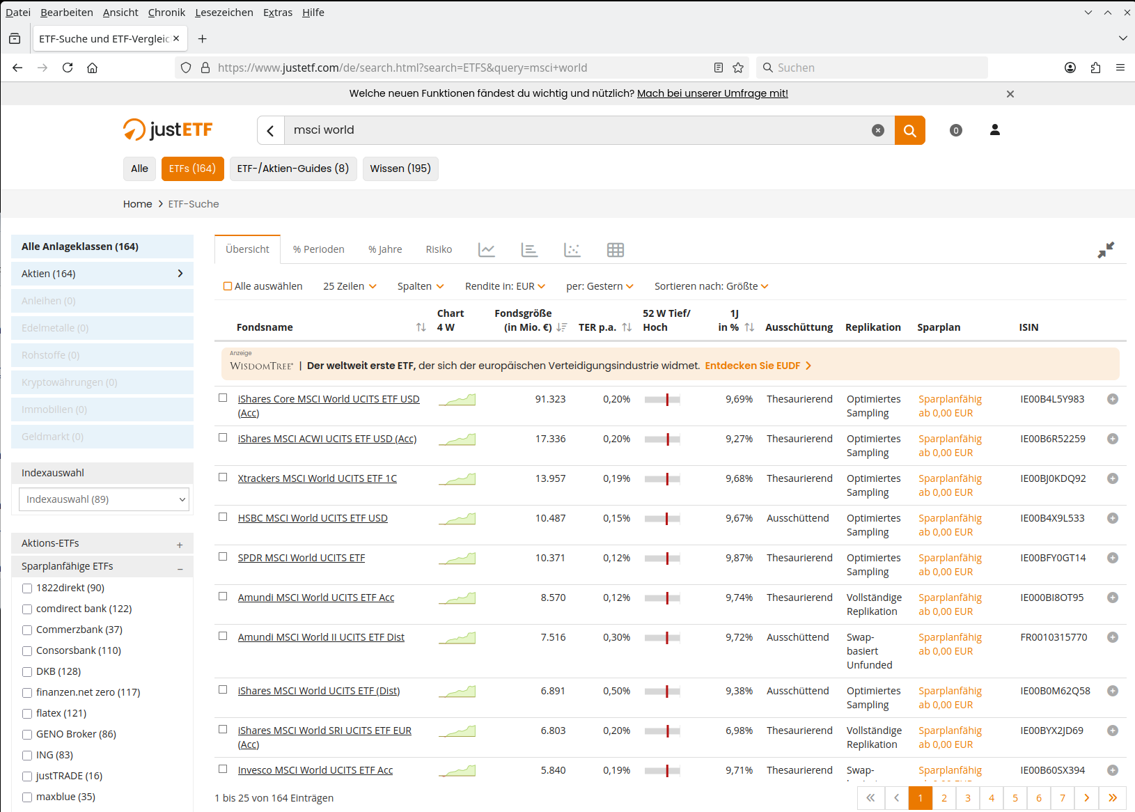 Der erste ETF schien ganz OK. Ein bisschen stört mich das optimierte Sampling. Doch