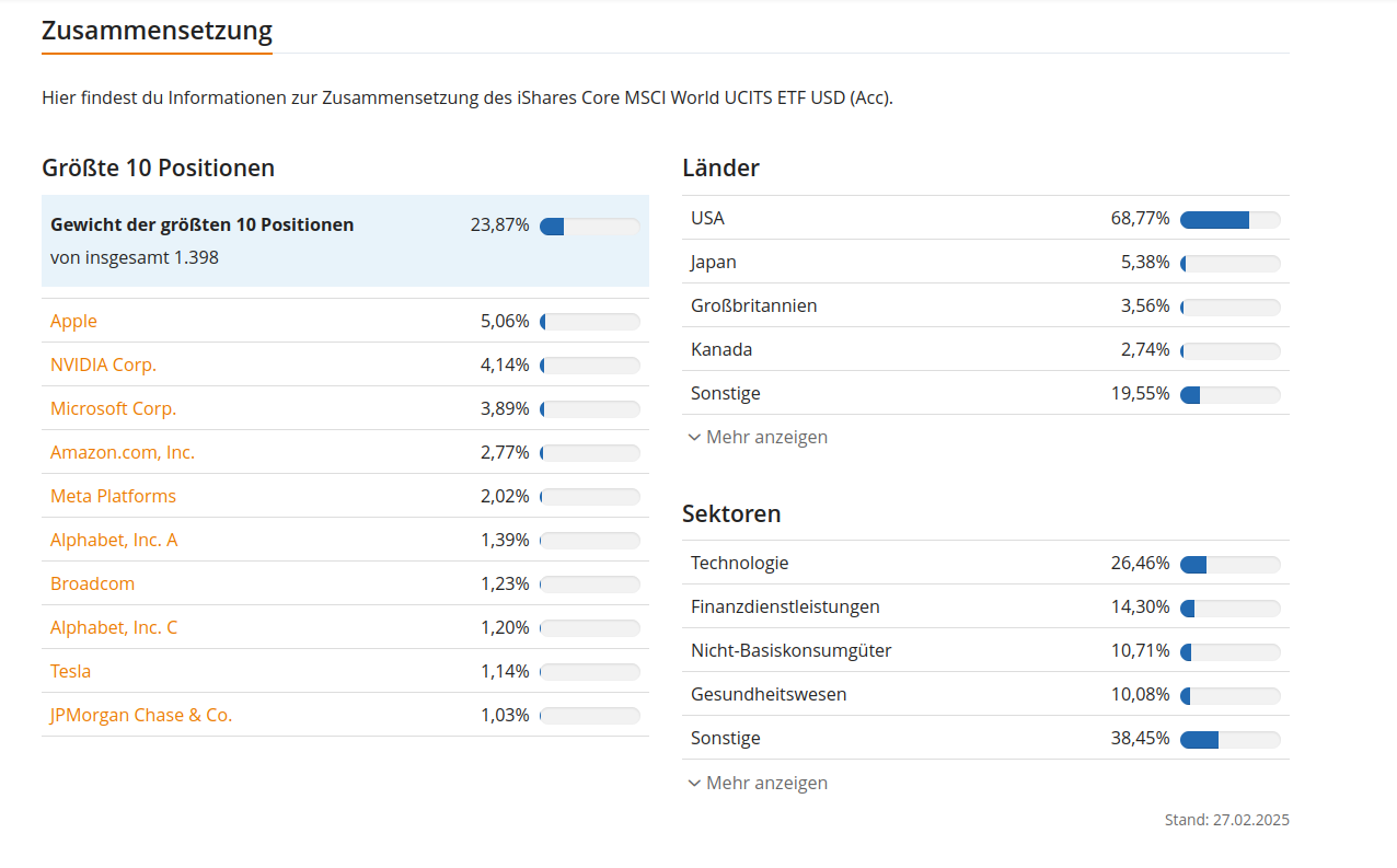 Der zweite ist ein "All Country" ETF, der hat auch noch einige kleine Länder dabei. Aber für den Versuch reicht der normale, der auch schon Aktien aus 23 Ländern enthält.