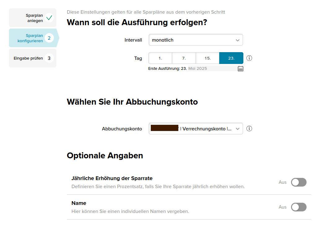 In der nächsten Maske muss man den Tag der Ausführung angeben. Ich habe einfach den nächst möglichen Zeitpunkt gewählt.