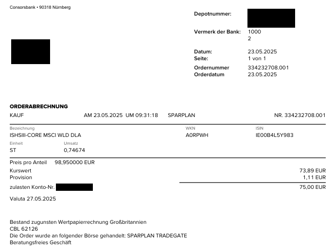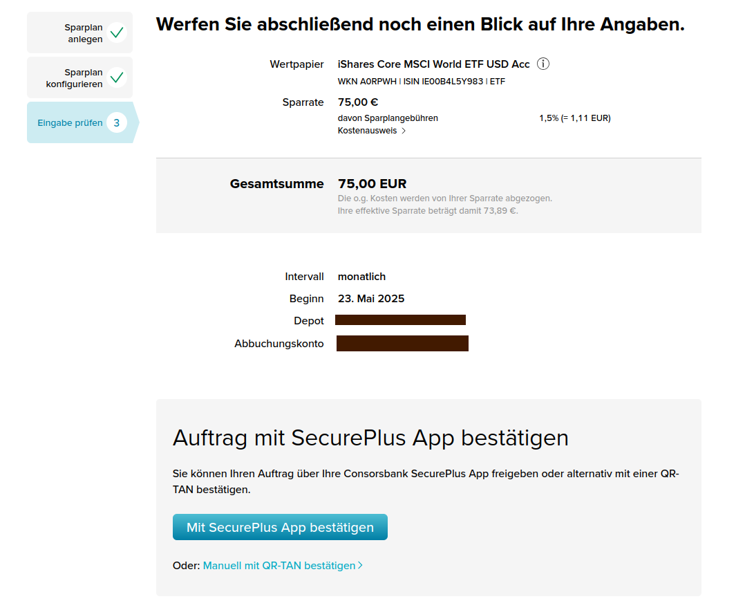 Ich hatte das vorher noch nie gemacht, und wollte die Erfahrungen dabei sammeln. Ich habe das bei meinem langjährlichen Broker Consors gemacht. Andere Broker mögen billiger sein, nur wollte ich jetzt nicht auch noch bei einen Neo-Broker ein neues Konto eröffnen.