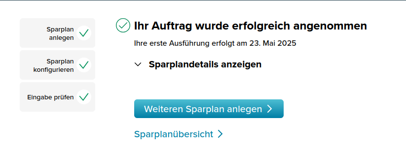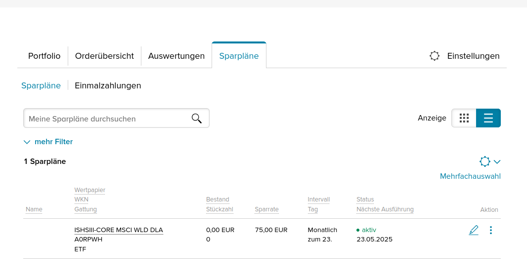 In der Depotübersicht kann man sich dann alle aktiven Sparpläne anzeigen lassen.