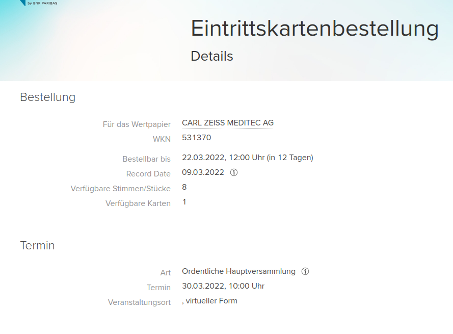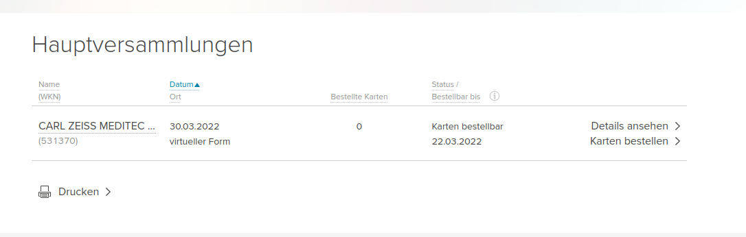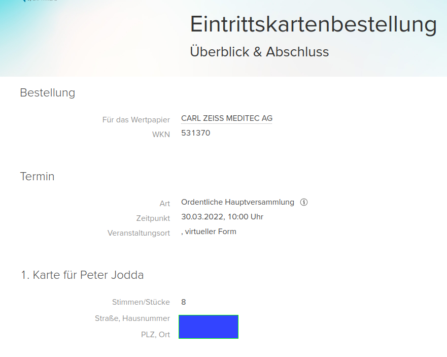 Dort muss ich auf Karten bestellen klicken. Es folgt eine weitere Maske. Dort kann ich auch noch die Versandadresse ändern.