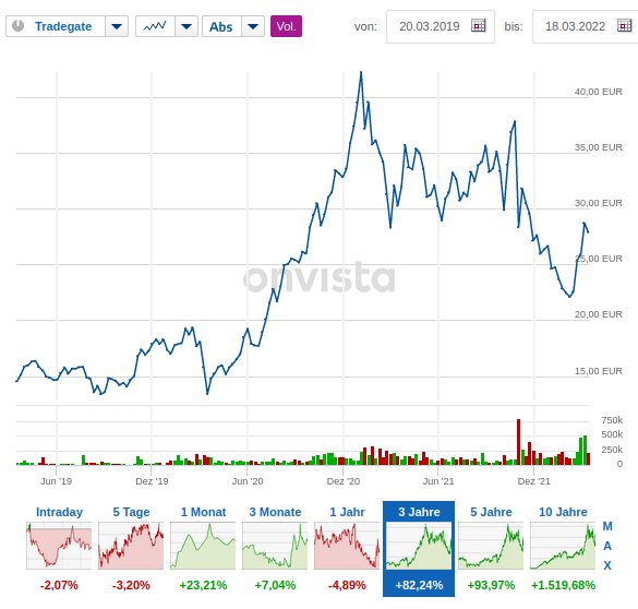 Bei den normalen Börsentickern erfolgt kein Bruch im Kurs. Die historischen Werte vor dem Split werden auch mit dem Faktor angepasst, so dass ein durchgängiger Kurs entsteht. Bei Vestas ist der Split im Kursverlauf nicht zu sehen: